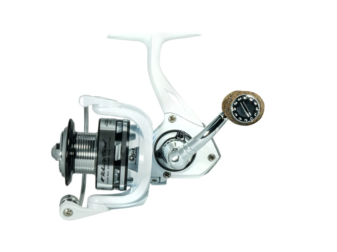 The White Bird Spinning Reel from Favorite Fishing offers mind-blowing performance at a crazy-low price. Its exterior consists of a durable, lightweight carbon composite body and side cover—the perfect rigid housing for the reel’s powerful gearset, 5+1 bearing system, and stainless-steel main shaft. The line roller and spool lip have a specialized titanium nitride coating that eliminates line twists, maximizing the performance of your go-to braid, mono, or fluorocarbon line. A skeletal rotor design and the reel’s slow oscillating movement ensure even line lay. An aggressive anti-reverse feature results in brutal hooksets and the reel’s 5.2:1 gear ratio is a versatile setup that’s optimized for countless techniques. The White Bird Spinning Reel is sure to be your new favorite—get one today!